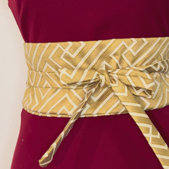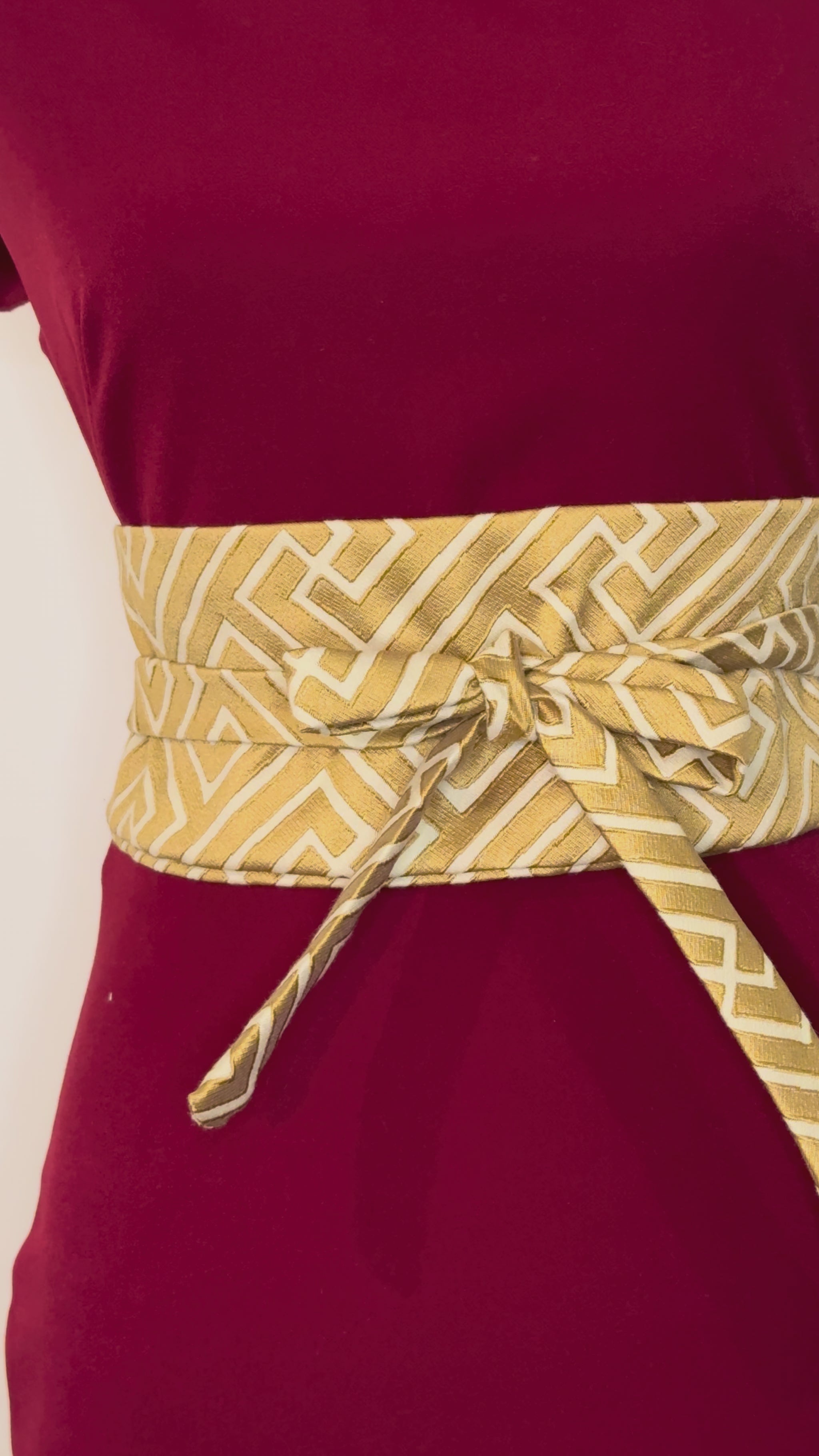 Entièrement en tissu. Les symboles géométrique et sa couleur doré en fera l'allié parfait de vos tenues festives.